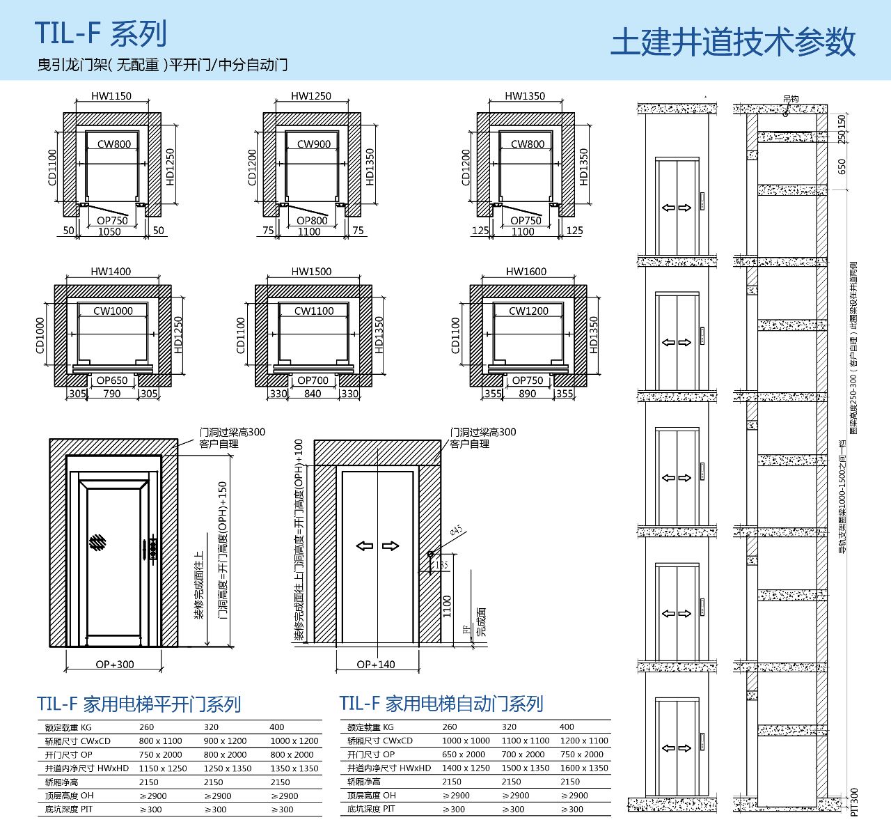 - 需要電梯底坑,一般不小于300mm