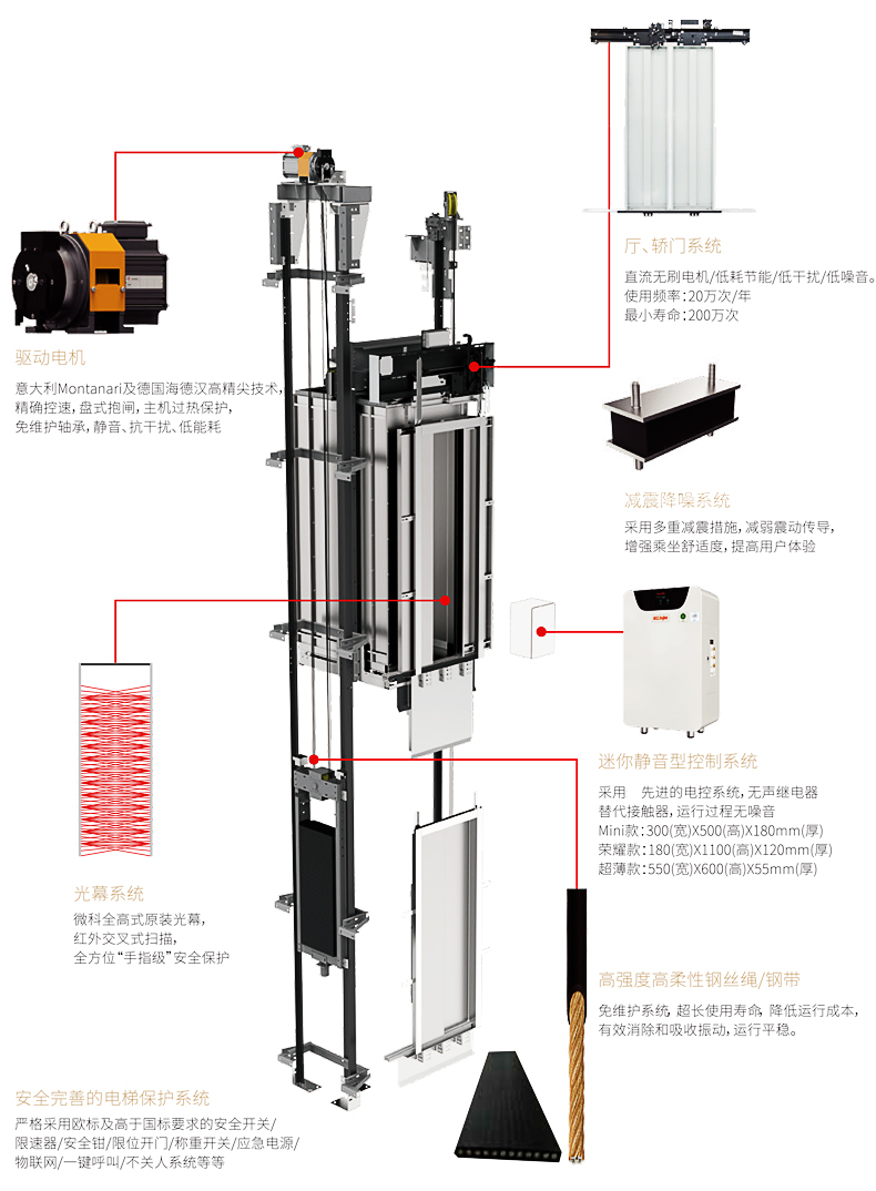 含白色鋁合金框架井道4層電梯上海地區標準配置價格: